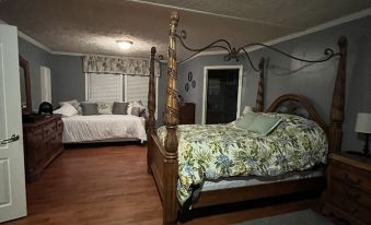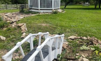 Over 155 acres for hiking we have bikes available to ride on back creek. There is a pool table and outdoor ping pong table . There is Roku t v and internet 28 mbps. The full back deck overlooking the creek is great for relaxing and grilling food. We have added a dry sauna in the master bath. Hot tub at back of home for relaxing evenings. Fire pit and sitting area in the back yard and fire wood stocked in shed. Kitchen is stocked with all the dishes and pans you may need and we will have fresh eggs in the fridge from are home during warmer months. Across the road there is a 1.3 mile walking trail through the woods. We strive to have all you need to make your stay enjoyable.The master bed is a medium feel tempur pedic and the guest queen is a sealy hybrid medium feel.