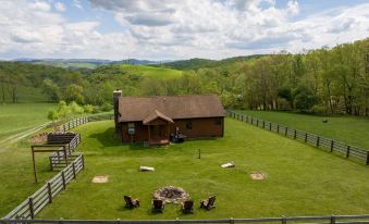 Spring and Summer guests will be visited daily by many humming birds who make their home on the farm. You will see a variety of red tail hawks an occasional bald eagle flying on the farm. A large heard of deer along with their new born fawns. The majestic wild turkey will let you know he is around with many morning gobbles. . At nights you will see a million stars as you sit around the rock campfire outside. WE ALSO PROVIDE ALL YOUR FIREWOOD for the campfire/ fireplace. The wood is a mix of white and red oak and some cherry mixed in. So you don’t have to worry about having to buy any! There is zero light pollution. You may even hear an occasional coyote howling in the distance. We also have cows grazing the fields munching grass. ..Note... there are no bulls ...There are steers and females only. Visitors at the end of July will find thousands of blackberries to pick.