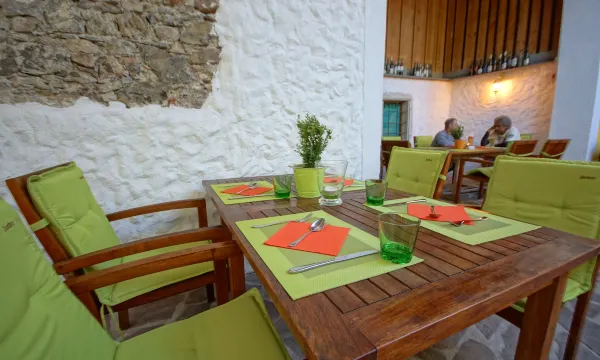 Im Ortszentrum an einer Tempo-30-Straße gelegen, entpuppte sich das vorzüglich sanierte alte Haus mit dem Charme von alten Gewölbestrukturen und Holztreppen sowie einem reizenden Innenhof bei jedem Wetter als eine Oase der Ruhe. Das Frühstück war ausgezeichnet, reichlich mit immer wieder frisch zubereiteten Speisen und in der großzügigen Gaststube. Das Restaurant, das wir fast täglich zum Abendessen besuchten, bot eine kleine, aber feine Karte von Wild bis vegan. Die Qualität war immer ausgezeichnet, das Personal hier wie im ganzen Haus freundlich und kompetent. Das Gastwirtspaar kümmerte sich um alle Gäste - und man fühlte sich als solche willkommen. Das Zimmer war großzügig bemessen und bestens ausgestattet.