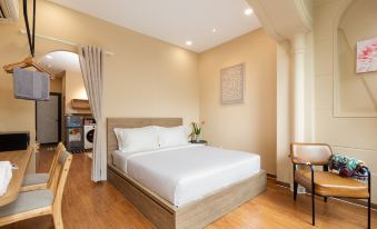 Discover our one-bedroom apartment in the heart of Saigon's District 1. Perfect for explorers, you'll be easy reach of famous sites and vibrant nightlife. The unit features an air-conditioned bedroom, a living room (No A/C), a basic kitchen, and a bathroom & is located on 2nd floor of a townhouse with a small takeaway shop below.
