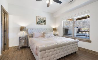 Della's Den features two spacious bedrooms, each furnished with luxurious king-sized beds, accommodating up to four guests. The ambiance is warm and inviting, with tasteful decor that enhances the cozy atmosphere. With two well-appointed bathrooms, guests will enjoy convenience and privacy during their stay.