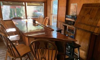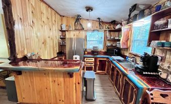 Newly remodeled! The kitchen is brand new and features live edge wood epoxy counters, and cabinets with all new appliances! New refrigerator, new stove, new in counter dish washer, new microwave, new toaster, and new Keurig plus 12 cup coffee maker!! Please do not cut on the counters - cutting boards, cooking utensils, pots, pans, cookies sheets etc all provided!!