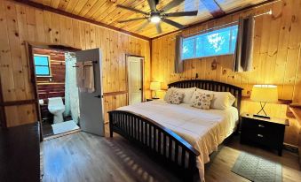 The Master has a king bed, smart TV and ensuite bathroom! This room was just completely remodeled and features knotty pine on the walls with cedar trim! The whole house smells like cedar!