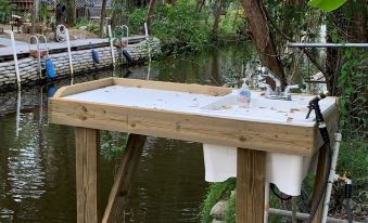 Enjoy the silence of the river from the comfort of your home. The house has a washer and dryer, ice maker by the dock, propane grill, outdoor shower, 4 kayaks for your use along with 2 adult life jackets and 2 children's life jackets-the new docks have steps down to the water for easy kayak launching. The A/C works great. New furniture and bedding. You can put your boat in at the Mason Creek boat ramp and you will be minutes away from the house. Keep your boat(s) right at the NEW Dock! The summer depth is around 4' and 2' in the winter.