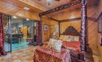 A Unique Luxury Boutique Stay The Mermaid and Manatee Resort is a unique vacation rental with over 3500 square feet for you, your friends and your family. This property features a gorgeous indoor heated swimming pool set to 80-82 degrees with a waterfall and the pool is surrounded by four elegant hotel like fully equipped private suites. Each of these bedrooms are designed and furnished elegantly and each have a fireplace, tv, and a mini-refrigerator for guest’s convenience. The kitchen is well stocked and the formal dining area is great for entertaining! This house is great for family reunions, bridal showers, golf retreats, corporate retreats and more. The grounds are exquisite and allow for large groups to break out into smaller groups, too! This magnificent palace is perfect for small family gatherings or a peaceful serene oasis for a quick getaway in a boutique hotel like atmosphere!