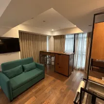 La stanza è molto ampia e dotata di tutti i comfort e le applicazioni necessarie, tra cui un'area chat e lavoro dotata di bar, una zona notte per un riposo profondo e un'area video e di intrattenimento. Ogni area a disposizione dei viaggiatori ha una sua funzione, rendendo più appagante la vita quotidiana dei viaggiatori in hotel.