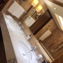 - la stanza del trucco ha vasca da bagno separata, doccia, WC e 2 lavandini che sono buoni per le coppie