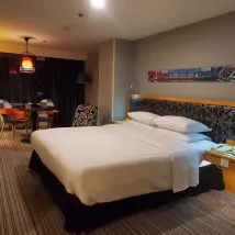 La camera era spaziosa e aveva un letto matrimoniale, una panca e una poltrona. Era dotata di tutti i comfort di base, inclusi i comandi per l'illuminazione in tutta la stanza e una porta USB di ricarica sulla testiera del letto, molto pratica e intuitiva. Il bagno era spazioso e ho particolarmente apprezzato la vasca da bagno. Sebbene fosse poco profonda, ha comunque soddisfatto le mie esigenze di immersione!