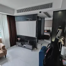 La camera è molto spaziosa, la TV con proiezione è fantastica. Tuttavia, ho pensato che se si utilizzasse un letto Queen invece del letto King, si avrebbe un po' più di spazio per camminare attorno al letto. Il personale addetto al check-in e alle pulizie è cordiale.