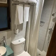 The room was extremely small—barely enough space to move around. The sink was tiny, about the size of a hand. The air conditioner blew directly onto the bed, and because of the cramped layout, there was no way to reposition it. The interior felt very old and worn out. I found trash under the bed and saw cockroaches both behind the bed and near the fridge. The main building has no elevator, which made carrying bags up the stairs a hassle. Also, the walls are paper thin—you can hear everything from the neighboring rooms.