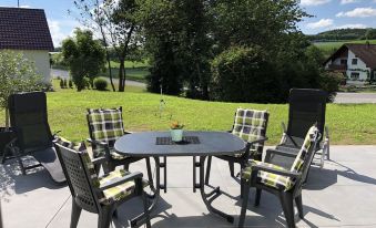 A new gas grill is also available so that you can fully enjoy the garden. With this house we offer you the opportunity to live in an entire house with a garden, surrounded by organic fruit orchards (Lake Constance fruit), all for you alone. In Horgenzell, Bavendorf, or Neuhaus just a few minutes away by car you will find enough opportunities to do your shopping. In the immediate vicinity there are also numerous opportunities to buy fresh Lake Constance fruit and bread at street stalls, even on Sundays and public holidays without time pressure.