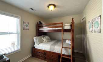 This Spacious home offers great comfort also modern and relaxing decor. The outdoor decks come with ample space for relaxing or dining. Overall a great family vacation. The living room has lots of seating, a new 50" smart TV, an open floor plan with a dinette and a new kitchen. This beautiful Kitchen is fully equipped and offers lots of work space, cabinets with lots of storage space. Washer and Dryer in house. First floor bedroom is a Queen bed, with a closet and access to the first floor bathroom. Living room has a sleeper sofa. The second floor does not disappoint with a Master bedroom to fight over. The large King bed with lots of space to bring your baby crib, additional seating for relaxing, on suite Full bathroom with walk in shower and soak tub. Another great feature is being able to walk out to the second floor deck and enjoy the ocean views. There is another queen bedroom on this floor and another bathroom. The fourth bedroom is the bunk bedroom with Twin over Full. All rooms are spacious and well decorated, they also have a smart TV in every room.