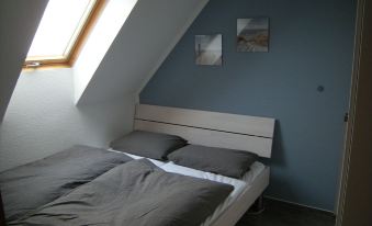 cozy attic apartment with two separate bedrooms for 4 people. Both bedrooms with double bed, living room with fitted kitchen, ceramic hob, fridge with 3 *** freezer, dishwasher, granite sink, balcony, shower room, apartment over 2 floors, completely covered with laminate, the apartment is on the second floor in the immediate vicinity of the Horumersieler Bathing beach, the spa facilities and the sea water swimming pool. About pets:No pets allowed.About checkOut:Check out before 10:00 AM.About children:Children allowed: ages 0-17.About checkIn:Check in after 3:00 PM.About smoking:Smoking is not permitted.About events:No events allowed.