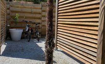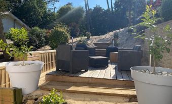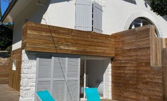 Layout: ideal for 2 families or teenagers 2 independent levels (communicate by outdoor wooden passageway, moving barefoot around the whole house thanks to the terraces)