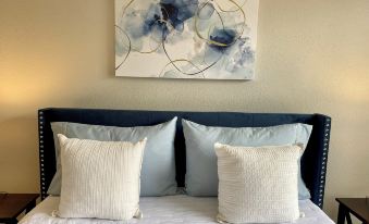 Our space has been thoughtfully designed to create an open and welcoming environment for both visitors and family alike. It boasts a clean and bright aesthetic, with all the necessary amenities to make you feel at home. You can relax in our comfortable beds, wrapped in cozy blankets, or unwind in one of our comfortable chairs. Take advantage of our stunning pool area or venture out to explore the nearby NRG Stadium and restaurants located around the medical center.