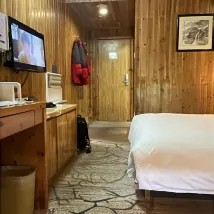 Risposta dalla struttura: Dear guest: Thank you for staying at Baiyun Hotel. The hotel is adjacent to Guangming Peak and Aoyu Peak, with an excellent location and numerous surrounding attractions. You are staying in our wooden cabin standard room, which is equipped with a 24-hour hot shower, high-speed WIFI, smart toilet, and we have also prepared cold proof clothing and warm items for you. The heating effect is excellent, and you can communicate with us anytime if you have any questions during your stay. Baiyun Hotel is located at an altitude of 1740 meters on a high mountain, making transportation inconvenient and equipment difficult to keep up with the updates at the foot of the mountain. But we will do our best to build better hardware facilities. Looking forward to your next stay!