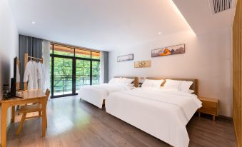The hotel is located in a 5A level scenic area - Huangshan, adjacent to Jade Valley, Xiangxi Drifting, and numerous scenic spots such as Jiulong Waterfall. Upon check-in, you can experience the experience< There is no clutter around the mountain dwelling and the environment is elegant. At the entrance, you can see the Emei style of Huangshan, and when you go out, you can enjoy the scenery of mountains and rivers. You can also go swimming and have water fights. The design is novel and unique, and each room type is different, giving you a different experience in the living environment. Independent floor to ceiling windows, independent large balconies for leisure tea, listening to the sound of springs, smelling the fragrance of flowers, watching stars, enjoying the moon, and admiring the sea of clouds. Swimming pool, restaurant, leisure area, book bar, drinking tea and admiring the moon, chatting with you about the beautiful scenery of Huangshan, living in the residence of Yinghong Mountain, and enjoying your lifelong style, achieving your rainbow life.