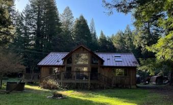This stylish place is perfect for romantic or family trips. Nestled in the Redwoods with a stunning cliff view and surrounded by private access to Redwood Creek. Only 10 minutes off highway 101!