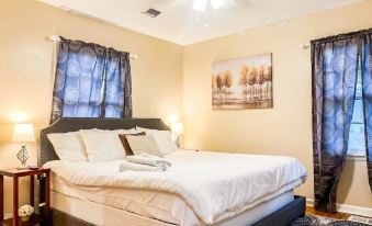 Questa casa vacanze con stile personalizzato è elegante e accogliente al tempo stesso. Se vuoi prendere una boccata d'aria, puoi approfittare del patio privato. Il bagno è dotato di vasca o doccia e set di cortesia firmati. A tua disposizione avrai anche un kit per la preparazione di caffè/tè e una lavatrice/asciugatrice.