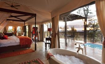 Trascorri una giornata d'avventura con un un safari e tuffati in una delle 2 piscine all'aperto. In questa tenda bungalow potrai inoltre contare su il Wi-Fi gratuito, un caminetto nella hall e l'assistenza per la prenotazione di tour e biglietti.