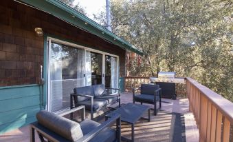 During winter, have fun sledding down the ideal backyard hill, and then cozy up inside by the fire while preparing a meal in our well-equipped kitchen. In warmer months, relish in a forest sunset while barbecuing on the roomy deck or savor a morning coffee on the private bottom floor deck. Idyllwild is the perfect destination for those who love hiking, rock climbing, music, art, nature, bird watching, or just want to relax in a peaceful and cozy environment.