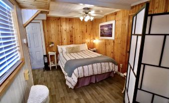 Welcome to Idyllwild Dairy Hen! Enjoy a weekend in this cozy cabin surrounded by tall pines and be walking distance to everything you need! This home sleeps 5-6 guests and is less than a ¼ mile from town. The home has two bedrooms and 1.5 bathrooms. The 1st bedroom is downstairs and has a queen sized bed. 2nd bedroom is in the upstairs loft which has the queen bed as well as the single bed. There is also a half bathroom upstairs in the loft as well.