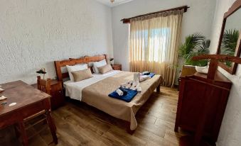 The silence, the peace , the banana trees, the beach, the waves, the sand , the sunsets , the moons on the sea, the freshly laid eggs, the goats and the lambs, the butterflies , the gold fish in the fountain , the wild thyme, the strawberry tree, the mediterranean heather and their honey, the grapes, the ouzo, the raki, the wine , the salt from the sea, the extra virgin olive oil. The sundial slowly drawing the hours, the home made cheese, the wilderness, the comfort , the coziness, the liveliness and the idleness, a total relax in the sun, in the history, in the myths , in the nature , in the cradle of the Western civilisation. And again, and always, and everywhere , and forever the sea.