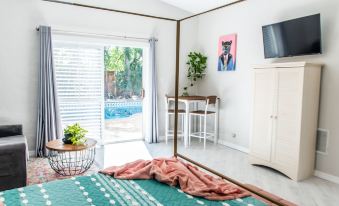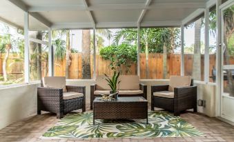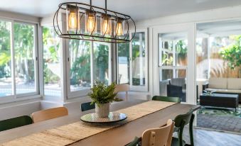 Welcome to Villa Palmas! A boutique-style property with a stunning private backyard oasis just one mile from the ocean. This 5 bedroom, 3 bath home evokes a unique Florida vibe all it's own. Thoughtfully appointed bedrooms, two of which are masters with their own on-suite bathrooms. Heated pool nestled underneath twelve different types of majestic palms. Mix up your favorite cocktail in the lounge, or cook in the fully stocked open kitchen- up to you. This is Florida vacation living at it's bestAbout pets:Pets allowed: dogs less than 50 lbs per pet (limit 2 pets total).About checkOut:Check out before 11:00 AM.About children:Children allowed: ages 0-17.About checkIn:Check in after 4:00 PM.About smoking:Smoking is not permitted.About minBookingAge:Minimum age to rent: 24.About events:No events allowed.