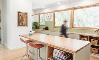 Relax in this private, beautifully designed, light filled, single level home in a quiet leafy street only 5 minutes’ walk to the beach (min 5 nights). Stunning well provisioned kitchen. Open plan dining-lounge, 2 spacious bedrooms, quality queen beds, 2 beautiful bathrooms, separate office with Wi-FI. Private rear garden with terrace for alfresco dining. Entry via a common drive, remote controlled gate, double lock-up garageAbout pets:No pets allowed, service animals permitted.About children:Children allowed: ages 13-17.Send request to host for children less than 13 yrs.About smoking:Smoking is not permitted.About events:No events allowed.