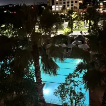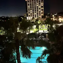 Service was xlnt. Pool big and clean with plenty of seats. food and bar good but pricey. They provided a free shuttle to and from concert