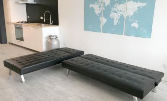 In the living room there is a 6-person table and two sofas which can be used as additional beds.