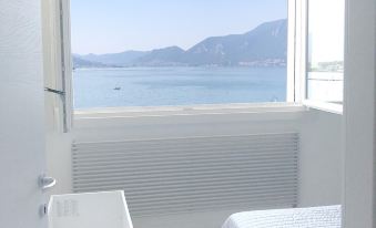 The apartment overlooks Lake Iseo directly, offering a breathtaking view from both the bedroom and the living area.