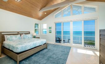 The spacious master bedroom is equipped with a king sized bed and private balcony for an unforgettable birds eye view of the turquoise waters. The private en suite bath features double vanities, a separate shower, soaking tub and water closet. There are two additional bedrooms upstairs, each equipped with queen beds and en suite bathrooms. The fourth queen bedroom is on the main level with a neighboring bathroom.