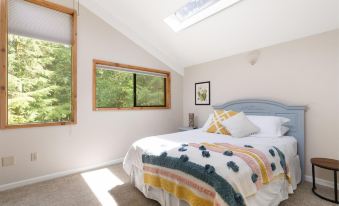 Fall asleep under the quiet night sky with the skylight blinds open in the upstairs bedroom and wake up to a flood of natural light and trees. Cozy up by the wood burning stove or snuggle up for a movie night and games!