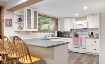 • Kitchen is fully-stocked with appliances, cookware, silverware, basic condiments and K-cup coffee and tea