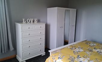 The house consists of a bedroom with king size bed downstairs,lounge with multi fuel stove,kitchen and 2 bathrooms both with showers.