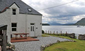 Isle of Skye: Comfortable cottage "Dunan", detached. 5 m from the sea, 5 m from the beach. Private: natural garden. Patio, garden furniture, parking at the house. Shop 10 km, bar 10 km, bus stop 100 m. Nearby attractions: Ashaig Beach 12 km, The Skye Bridge 17 km, Talisker Whisky Distillery 28 km. Please note: car recommended. 3-room cottage 76 m2 on 2 levels. Spacious and bright, comfortable and tasteful furnishings: living room with TV (flat screen), DVD and wood-burning stove. Kitchen (4 hot plates, dishwasher, microwave, freezer) with dining table. Upper floor: 1 double bedroom with 1 double bed. 1 room with 2 beds. Bath/shower/WC. Heating. Garden. Terrace furniture. Very beautiful view of the sea. Facilities: washing machine, dryer, children's high chair, baby cot for up to 2 year olds. Internet (WiFi, free). Please note: maximum 2 pets/ dogs allowed. TV only EN.