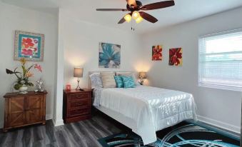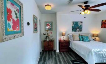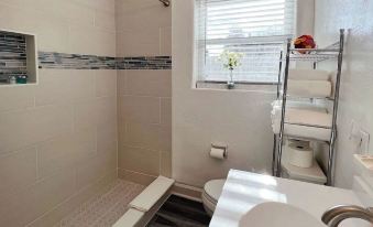 This is a completely renovated and well decorated bright and spacious single level 1 bedroom apartment. The front yard is professionally paved for the convenience of parking. Large living room has a smart TV and a comfy convertible couch that can sleep 2 guests comfortably. Fully equipped kitchen with a standard fridge, microwave and dishwasher can make you feel right at home while away from home. The bedroom has a queen size bed with brand new firm BeautyRest mattress and a smart TV. There is a large desk set up as a workstation in the bedroom. You'll love the brand new beautifully tiled walk-in shower. The high speed internet is great for streaming your favorite shows or working from home.