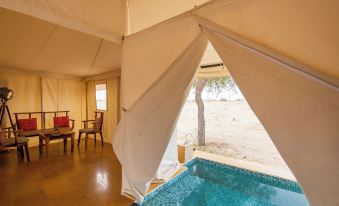 Kanak Jaisalmer offers top-notch services and amenities, ensuring guests experience utmost comfort.Share your photos and respond to emails at your convenience, thanks to the free Wi-Fi internet access offered by tent.Should you require transportation to or from the airport, tent is able to organize it prior to your arrival date.Taxi, car hire and shuttle offerings at the tent simplify arranging your excursions, explorations, and additional activities in Jaisalmer. Visitors can take advantage of complimentary parking directly at the tent. Reception services such as concierge service and luggage storage are available to accommodate your requirements.Should you desire access to the top entertainment in the city, assistance can be provided by the tent's tours. Traveling with minimal luggage is achievable at Kanak Jaisalmer due to the tent's laundry service ensuring your garments stay fresh. Room amenities like room service and daily housekeeping contribute to making a perfect selection for your stay.Each accommodation at Kanak Jaisalmer is thoughtfully created and adorned to provide visitors with a comfortable, home-like atmosphere.In select rooms of the tent, guests can enjoy the advantage of having air conditioning available for their convenience.Rest assured, in a few chosen rooms, you will find the convenience of bottled water and a coffee or tea maker at your disposal.Maintain your cleanliness and comfort using a hair dryer, toiletries and bathrobes available in select guest restrooms. Begin your holiday on a high note. At Kanak Jaisalmer, your mornings are greeted with a delightful, free breakfast.Should you prefer not to venture out for a meal, the enticing culinary choices at tent are always available for your satisfaction. Experience an unforgettable evening with your fellow travelers just a short distance away, at tent's bar.Should you be particularly discerning in your dining choices, you will surely appreciate having access to the on-site BBQ facilities provided at this location. Kanak Jaisalmer provides a superb assortment of leisure amenities for guests to enjoy. Each day at tent, immerse yourself in the invigorating waters of the pool, perfect for a rejuvenating plunge or a series of revitalizing laps.