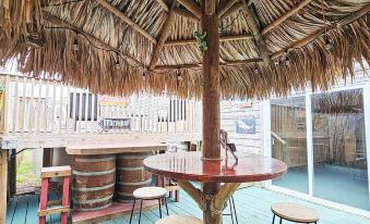 Challenge your crewmates to a game of volleyball, badminton, horseshoes, ring toss, or bocce ball in the spacious and fully fenced private back yard. Also dive into relaxation with your own private pool and unwind under the shad of the charming Tiki Hut. Perfect spot for sipping on tropical drinks and sharing stories. Next relax by the firepit with your crew after a long day at the beach. Venture down to the belly of the ship and enjoy Laffite’s hideout/game room.