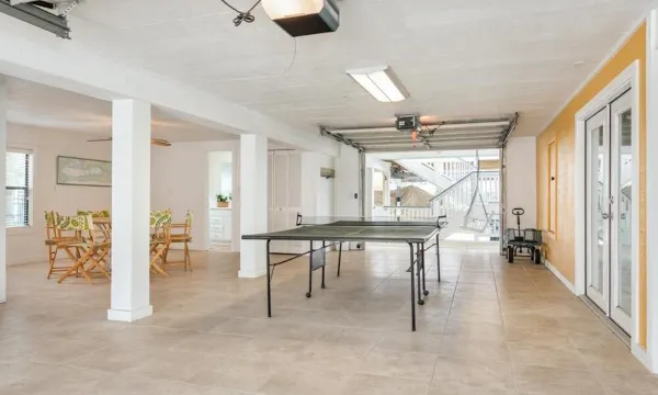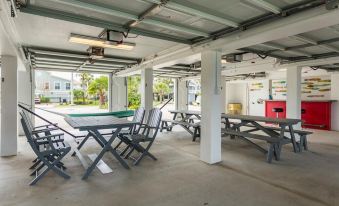 The lower level of the house has room for multiple people to gather with its picnic tables and built in bar area. The kitchen comes well stocked with pots/pans/dishes/cutlery, a Keurig coffee machine as well as a normal coffee maker, and a Ninja blender for making frozen drinks.