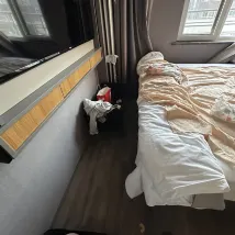 Location is good ! Definitely walking distance to shopping malls , restaurants, lakes , etc . There are many restaurants near the hotel . The hotel is inside an alley way , so the hotel is not very noticeable. The room we stayed in was small but perfect for 2 people . It doesn’t have heating but it has central air con for heating . The bedsheets smelled like cigarettes, but I sprayed it with some fabric spray. Overall , it was a pleasant experience, the front desk were nice and kind . Definitely will book again if I come back to Jinan ~ beautiful , beautiful city!!! Also here’s a recommendation there’s a Japanese restaurant near the hotel - it’s a little expensive but the quality is very good . Also if you want to eat some good breakfast there’s a restaurant when you hit the main big road to the right at a corner you will see alot of people eating in there - it’s delicious!! Have a try and enjoy Jinan ❤️