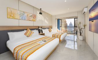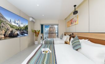 Xiaofeng River-View Smart Audio-Visual Twin Quadruple Room (Large-Screen Projection + City River-View)