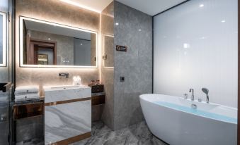 Yuemingzhuang opened in early 2021. It is located on the banks of the "Lancang River-Mekong River", a beautiful international public river known as the "Oriental Danube River", in the west Shuanglu of Gaozhuang. Here, far away from the noise of the world, stepping into a beautiful and peaceful place. In a beautiful place in Yunnan, Xishuangbanna, Gaozhuang Xishuanglu, it is blooming like a pearl, making travelers feel like seeing them for the first time. Adjacent to the Shwedagon Pagoda, Starlight Night Market and Six Countries Snack Street, it is convenient to travel to major scenic spots. According to the star standard, the hotel integrates the Chinese way of Go-. Harmony is precious and the concept of Chinese tea culture and life aesthetics, and integrates the material selection of black, white and gray with the modern light simple style into the hotel design to create a comfortable, leisurely, relaxed and comfortable aesthetic space. The hotel is about 20 minutes' drive from the airport, next to Gaozhuang Tourism Distribution Center, and it is very convenient to go to scenic spots. It is a simple-style resort and leisure hotel, located in Gaozhuang Xishuangjing Business Center. Our head is to shout more expectations for young people's holiday and leisure lifestyle. There are not many guest rooms, 26 in total, which are fully equipped. Each guest room has its own style and enjoys exclusive space. The hotel room type is related to lifestyle, which shows various attitudes towards hotel life. The room is blended with black, white, gray and modern minimalist style of fish color, light luxury and simple but not simple. It is a decent and leisure hotel built for groups who pursue quality life for travel, business trips and vacations. It is committed to redefining hotel life, taking quality experience as the core and quality service as the foundation, leading everyone to re-experience the quality life of the hotel. The hotel also has restaurants, rest rooms, billiards rooms, swimming pools, conference rooms, laundry