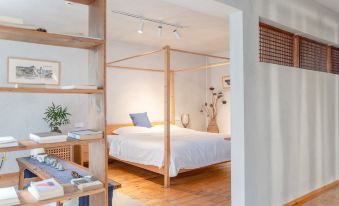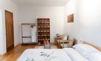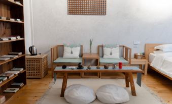 其次店家的品味也能體現在房間的佈置上,我住的是生白,大約有50坪,非常寬敞,房間整體是中式古色古香的風格,房間門做舊門,房內使用傳統的木條插鞘上鎖,出門就用鎖頭鎖上,老門板當茶桌,中式沙發,木製格柵裝飾,木地板,衞生間也是木板吊頂,還有個木製開放式書架隔開了客廳和卧室,整體格局非常舒服,看得出來店家花了心思在房間的佈置上。我們是淡季去的,房價也十分優惠。