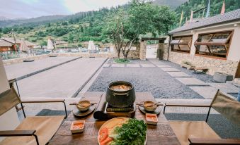 Zhongcha Shanxia inn is located in the hinterland of Zhongcha Gou, backed by Baijian Shenshan and facing the grassland. It has 10 rooms including homestay, restaurant, and caf é, each with its own scenery. During the day, guests can ride horses and take forest walks, and at night, they can experience bonfires and collectors; The coffee shop can serve latte, gourmet food, other tea drinks, cakes and other desserts, while the restaurant can serve Western style light meals such as pizza and pasta, as well as local specialties such as matsutake and stone pot chicken. It is a very suitable homestay for vacation and leisure.