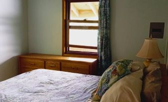 Because the south shore is known for its breezes, ceiling fans in the living/eating area keep boathouse comfortable and many guests do not even use the air conditioning in the bedroom.