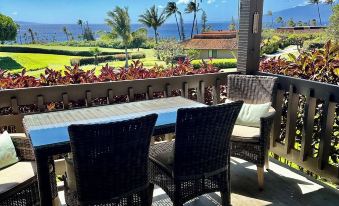 Ocean views from every room, most peaceful & private location in Kaanapali Plantation. Situated steps from the pool& tennis court yet do not hear any noise. Off of the street and parking areas. Nestled on the hillside overlooking the Royal Kaanapali Golf course with spectacular panoramic ocean, both islands of Lanai & Molokai and sunset views. Walking distance to Kahekili (Airport) beach known for some of the best snorkelling or diving in Maui and leads directly to the famous Black Rock. Short walk to many local restaurants and the best shopping of Whalers Village.