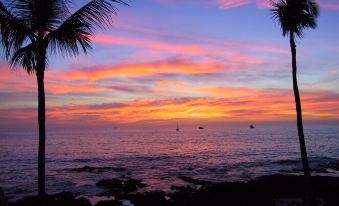 Kona Reef, beautiful one-bedroom, direct oceanfront condominium, on world-famous Alii Drive. Our condo is 23 feet from the ocean and offers spectacular sunsets. Watch the surfers and the dolphins from the lanai.