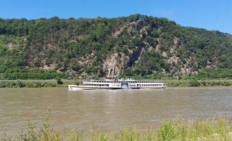 L'aeroporto più vicino è Aeroporto di Francoforte-Hahn, che dista 101,6 km dall'hotel, in macchina circa 1 ora 14 min..Come arrivo dall'aeroporto più vicino a Nice apartment with balcony directly on the Rhine; centrally located?